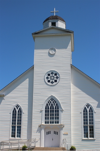 Watch for the Creignish Recreational Centre. The parking lot was filled when I was going through. Apparently, there was a luncheon and a ceilidh! The historic Stella Maris Church is just across the road from the centre. It was built in 1899 and is the pride of the community. It sits proudly at the base of Creignish Mountain and has a commanding view of St. George's Bay. There is a pioneer cemetery beside the church. The headstones date from the early 1800s to present day. |