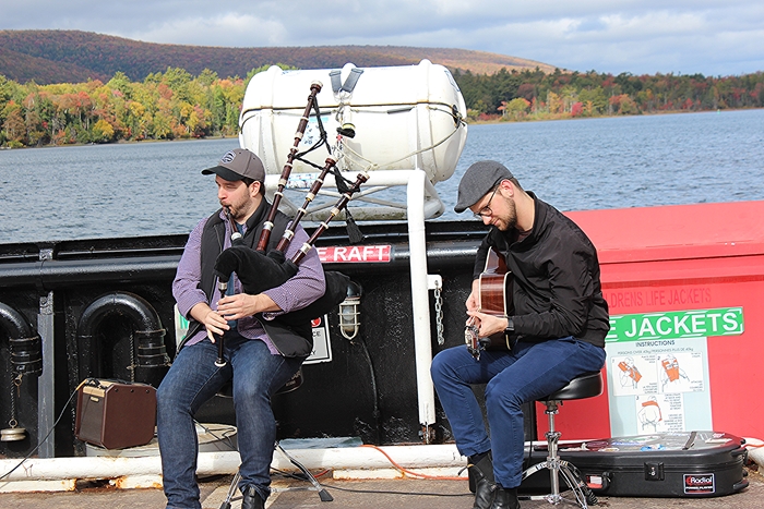 couples danced to the tunes of a piper and guitar player. They looked like they were having a great